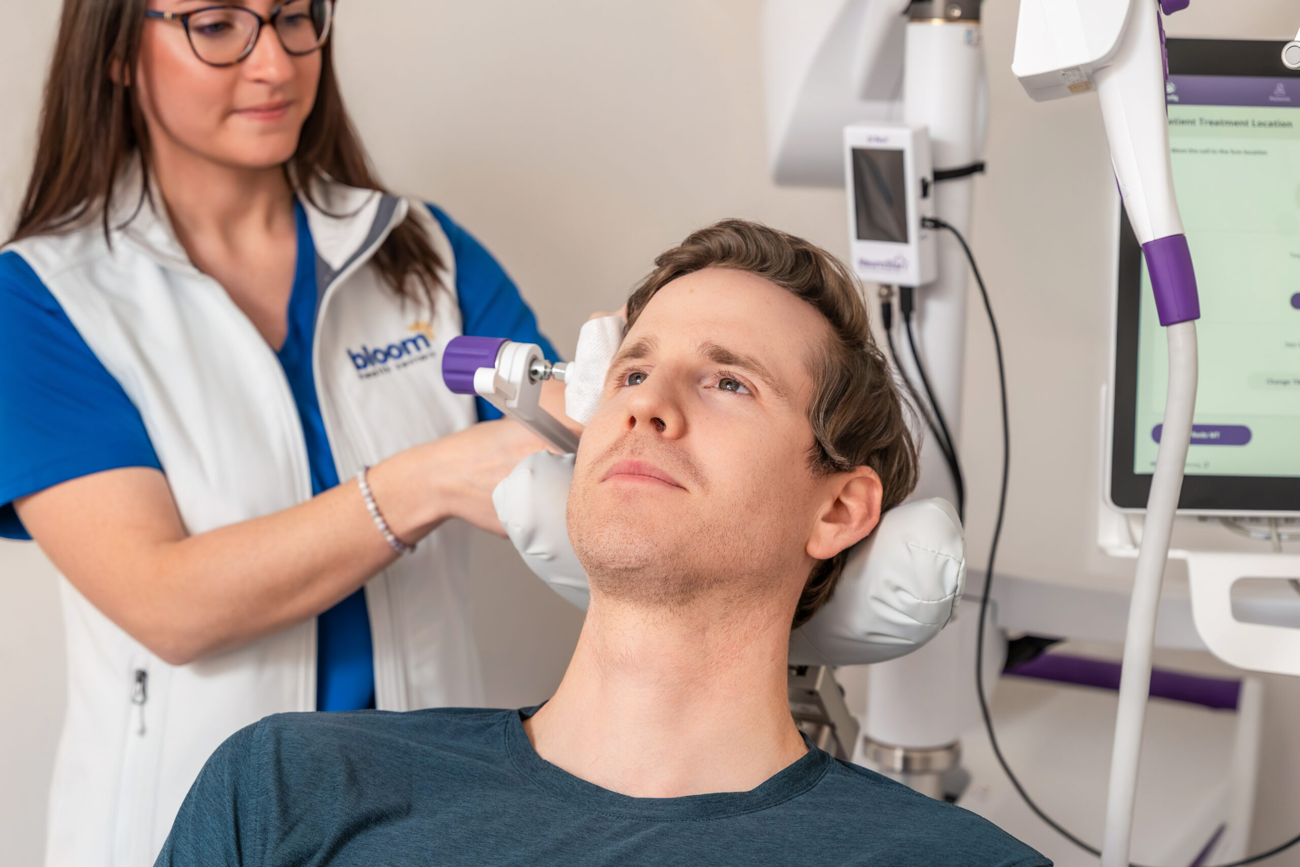 - NeuroStar TMS sessions are conducted in a Bloom office