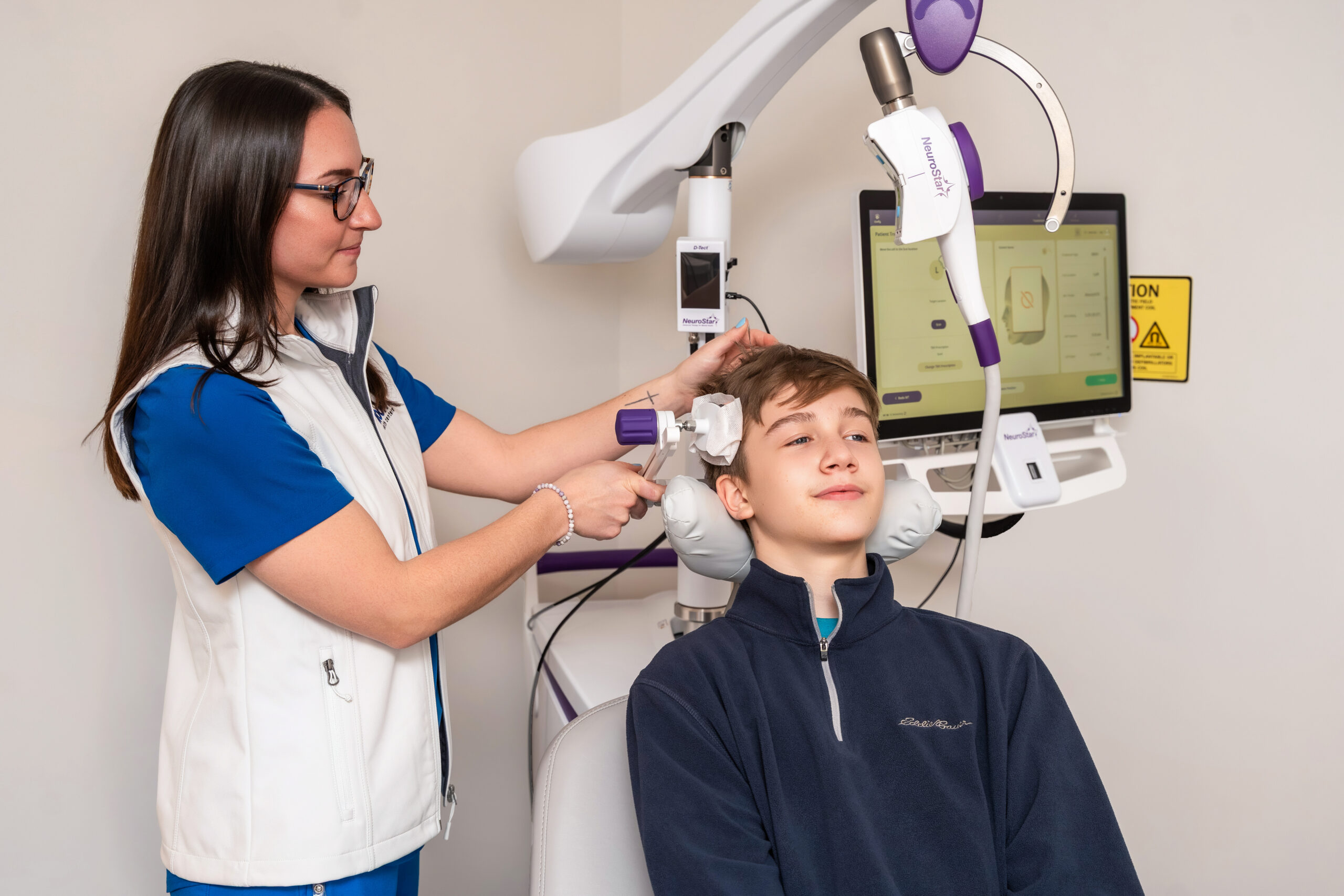 TMS is virtually free of side effects because it is non-systemic and does not enter the bloodstream like medications. The magnetic pulses pass through your scalp and into the desired brain location. You’ll hear clicking sounds and it can feel like a knocking, tapping, or tingling sensation on your head. Some patients may experience a headache or scalp sensitivity in the treatment location.
